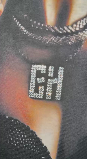 T-shirt oversize in jersey pesante 230g/m², caratterizzata dal logo GH sul petto interamente decorato con strass premium.